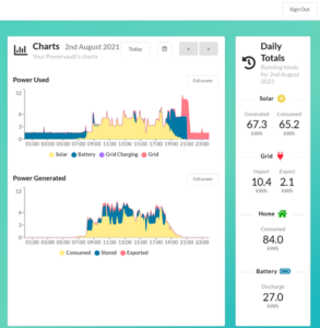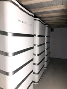 In the evenings on site electricity demand is first met by what is stored in the Powervaults and only imported from the grid once this has been exhausted.