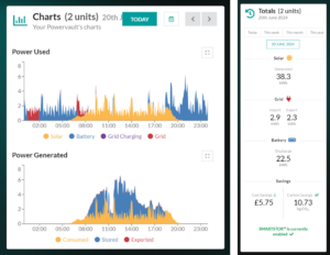 On windy nights, they even experience negative import prices with their Octopus Agile tariff, effectively getting paid to buy electricity from the grid, which they then store in the Powervaults for later use, all done automatically thanks to Powervault’s SMARTSTOR software.