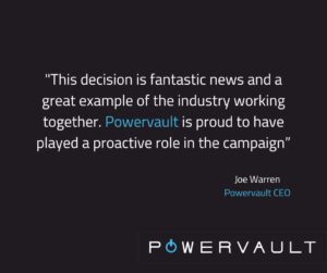 Powervault CEO Joe Warren talked about Powervault’s role in the campaign, stating, “This decision is fantastic news and a great example of the industry working together. Powervault is proud to have played a proactive role in this campaign and we are very grateful for the Renewable Energy Association and others for taking up this cause and working with us to secure this key outcome. Installing a battery energy storage system can dramatically increase the savings from a home solar installation, reduce carbon emissions, support the grid at peak times, reduce infrastructure investment and increase energy security for the UK. The UK as a whole benefits as a result of the support to essential “green jobs” and by creating a good environment in which UK technology companies can flourish and ultimately generate export revenues. Most importantly, customers want to be part of the solution, and it’s our mission to help them wherever we can.”